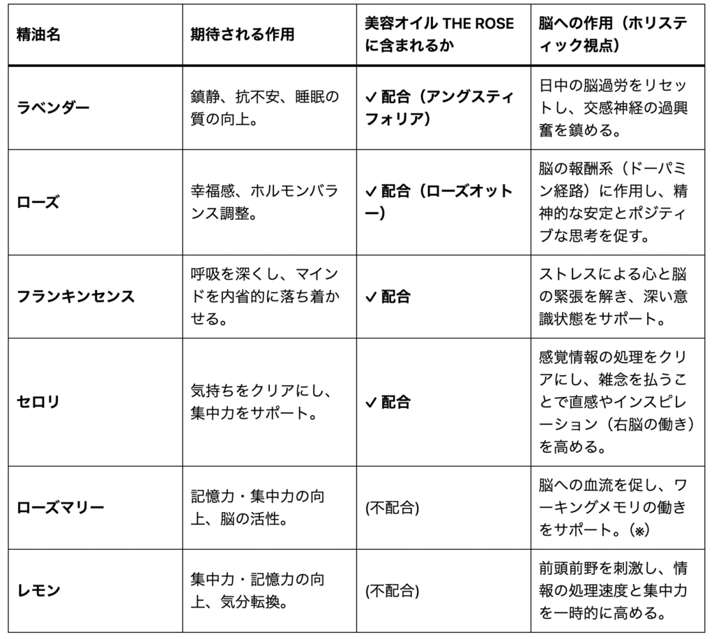 ホリスティックな視点に立つTHE ROSEが提案するのは、この過剰な「心のノイズ」を静め、脳の深いリラックスを促すための「香りの力」です。